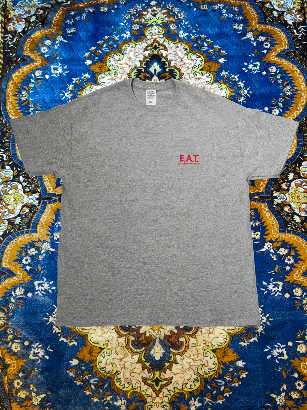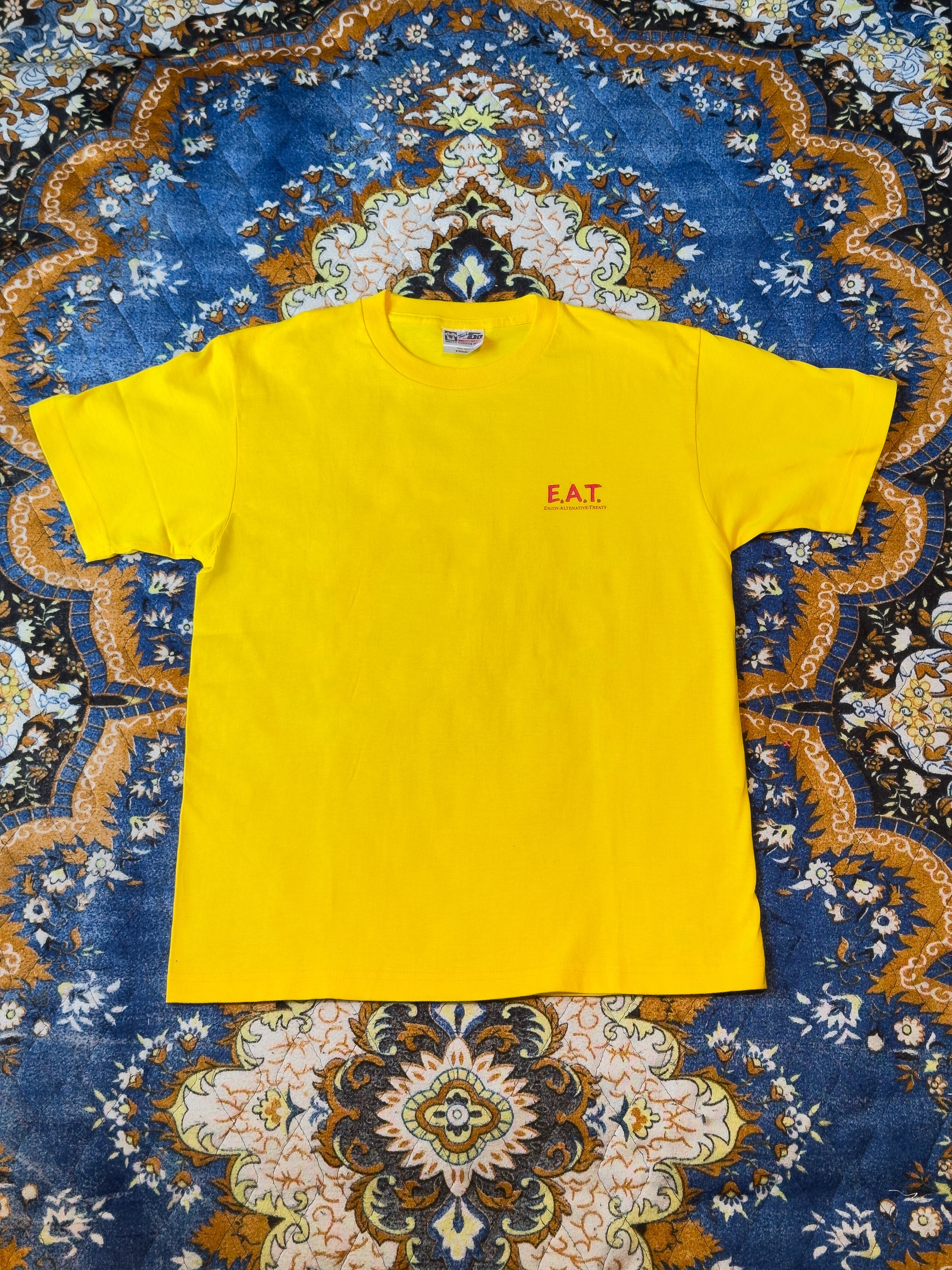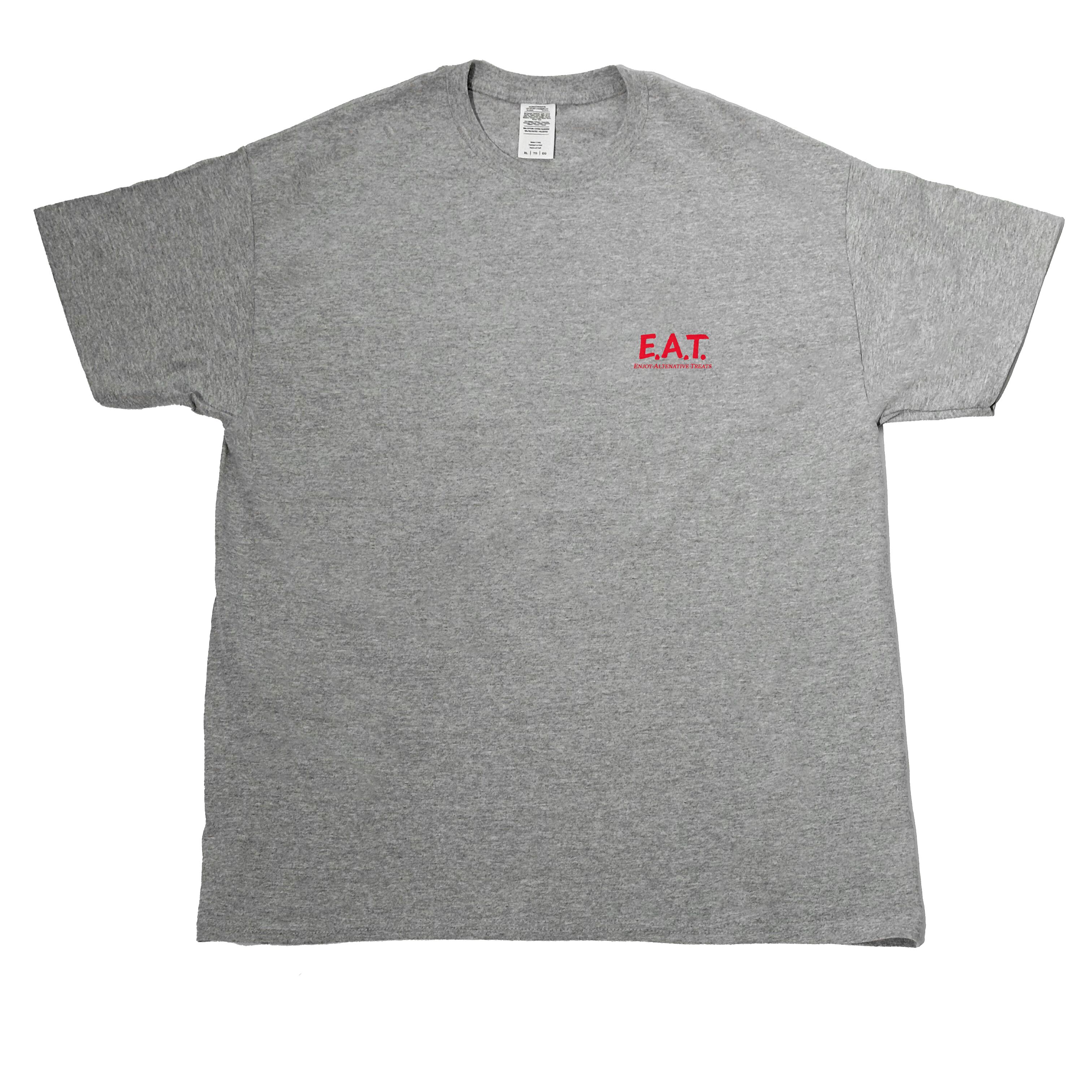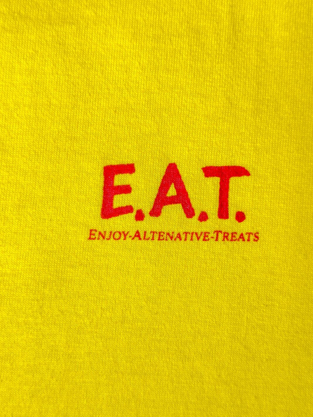 「満腹から平和を」をスローガンに、「食べる楽しさ」が続く世界を目指し発足した国際食料支援機関 E.A.T.(イー.エー.ティー.) のオフィシャルTシャツ。まだ体験したことのない食との出会いを楽しむデザインということで、大好きな映画 E.T. をモチーフにしたデザインです。