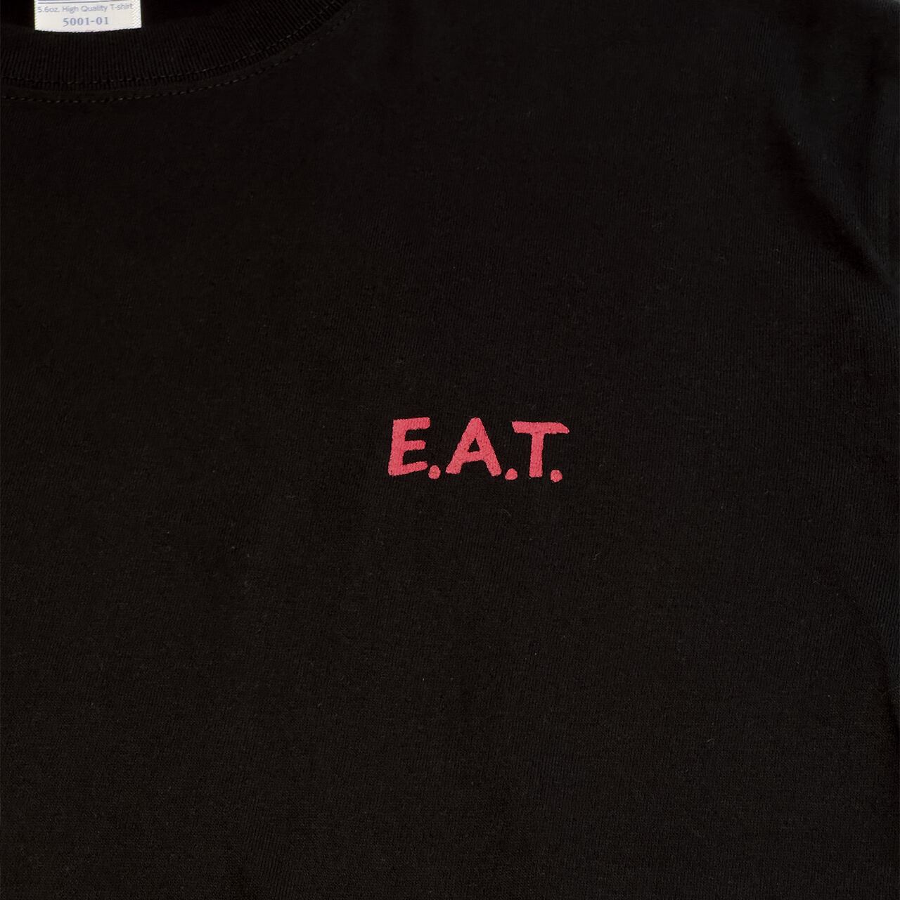 ある学者は、「食へのDIY精神と探究心を忘れず、高級ではなくとも、毎日の食の自由を余す事なく楽しむべきだ」と話していた。そう言われると、食べ物にまつわる幸せな記憶と感情は繋がっている。料理の食材が持つ香りや味によって呼び起こされる記憶は、『食べ物』を個人の経験と深く結びつけ幸せを創り出している。まずは、どんな食材でも残さず腹いっぱいべることから始めよう。という姿勢をTシャツにしてみました
